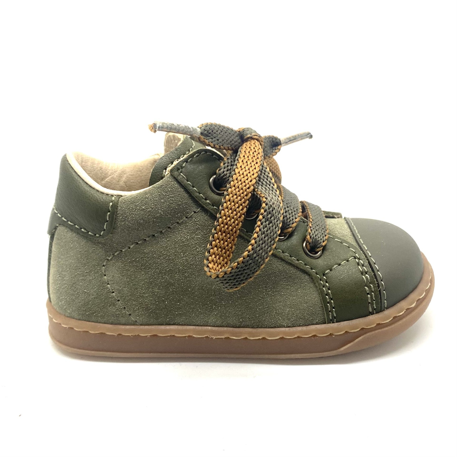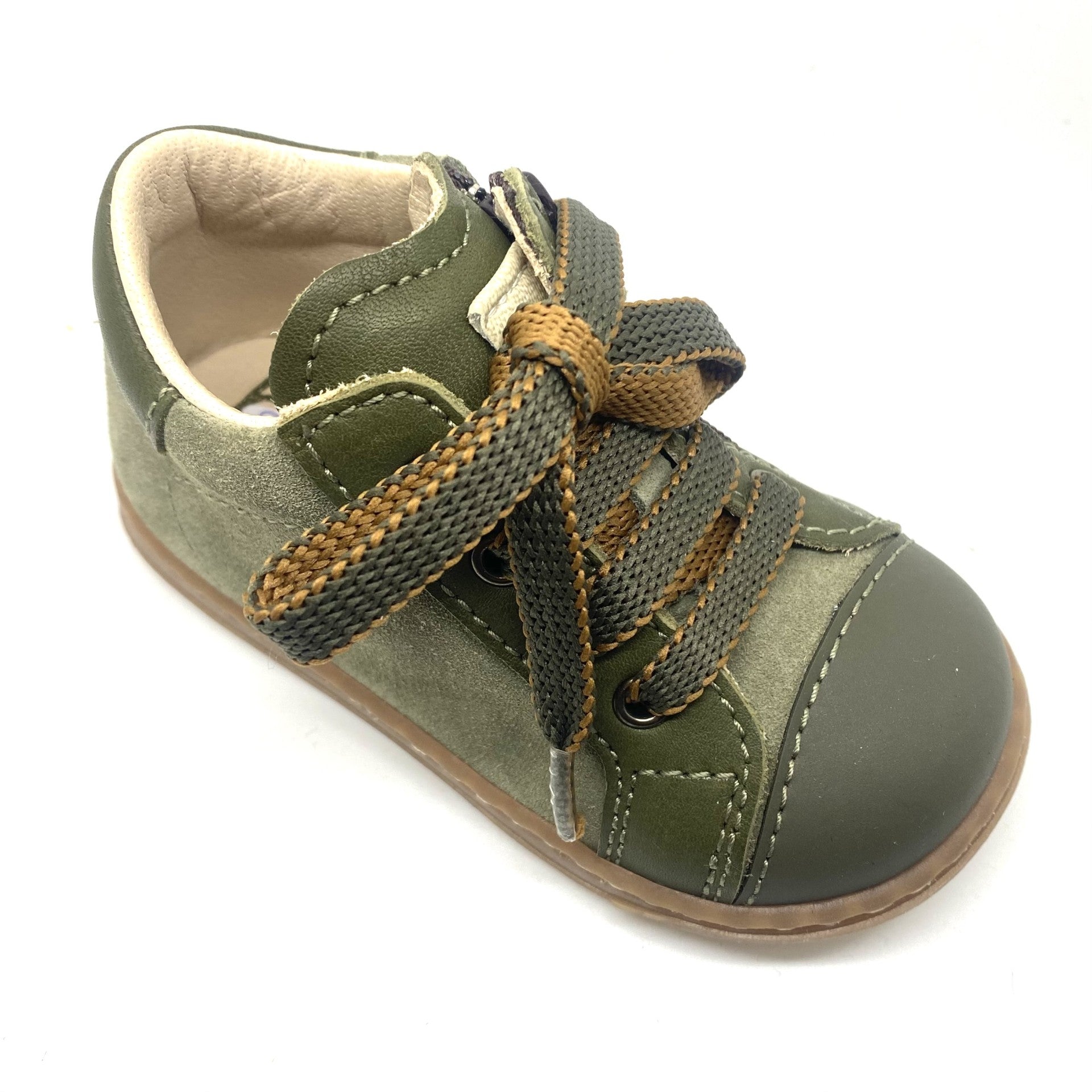 Beberlis kaki schoentje met veters, rits en rubber tipje