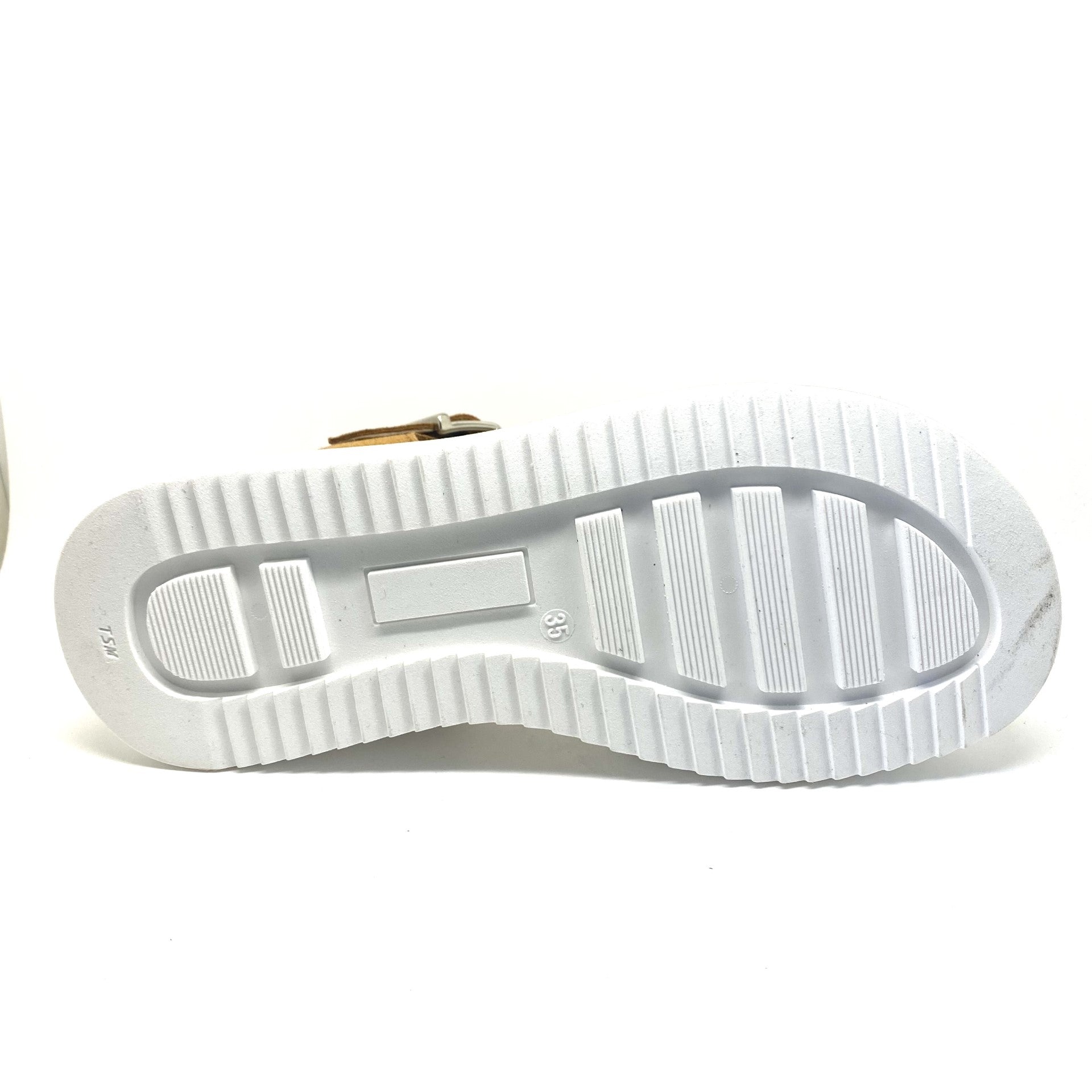 Dikke witte zool. Volledig in leer en met een zacht voetbedje.
