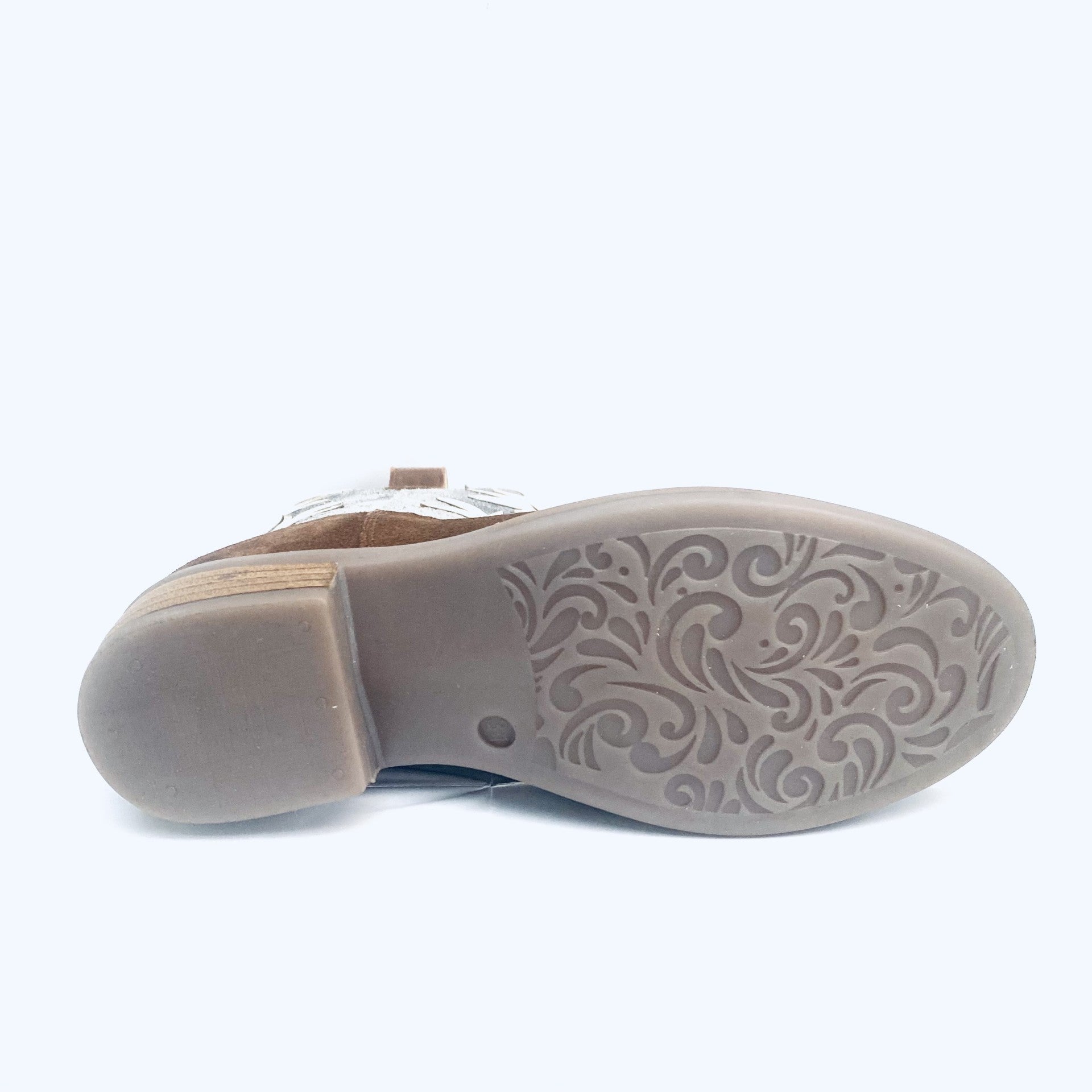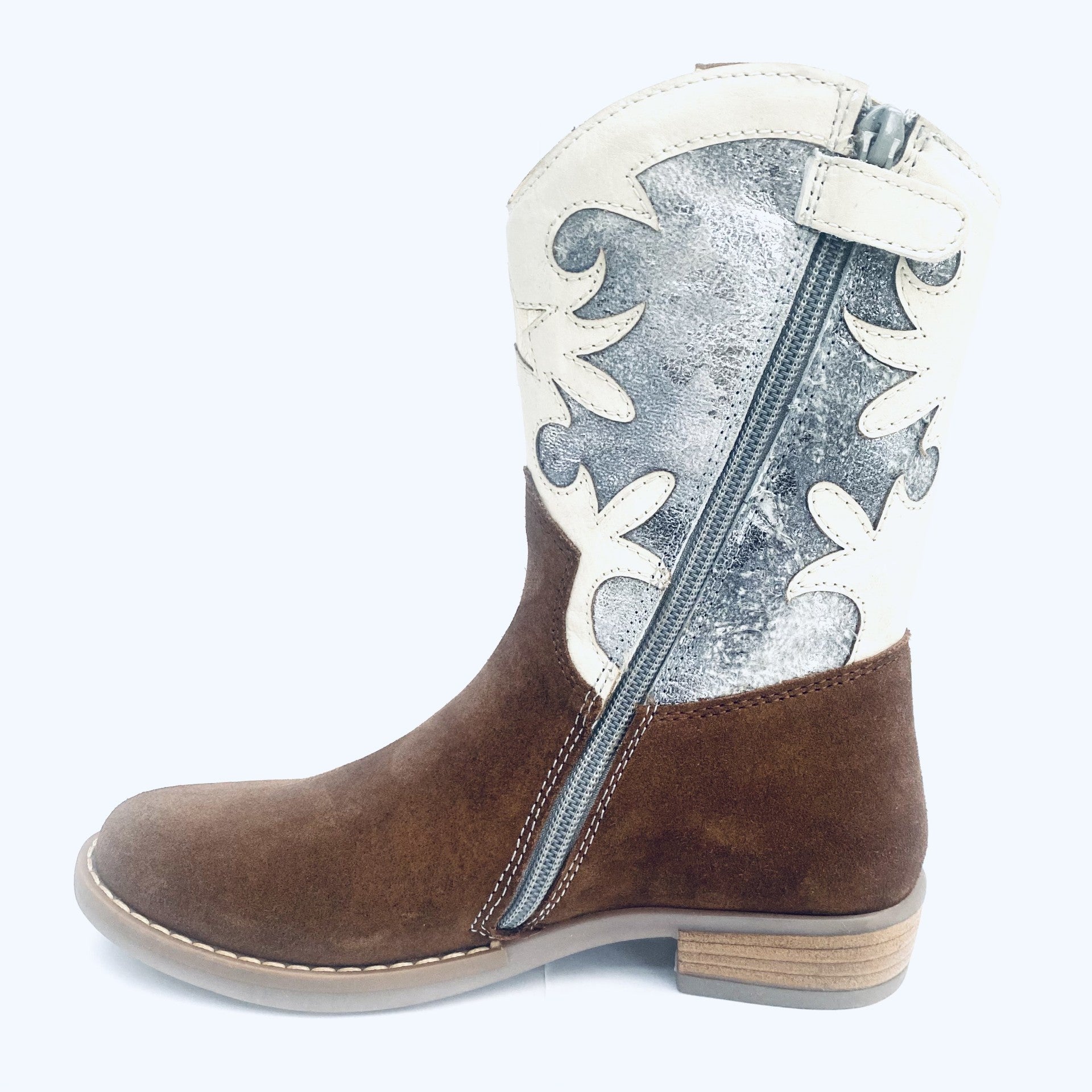 Kei toffe cowboy laars met mooie print. Volledig in leer binnenin. Buitenkant bewerkt leer. Met een uitneembaar binnenzooltje. Valt ruim op maat. Zitten super aan de voet.