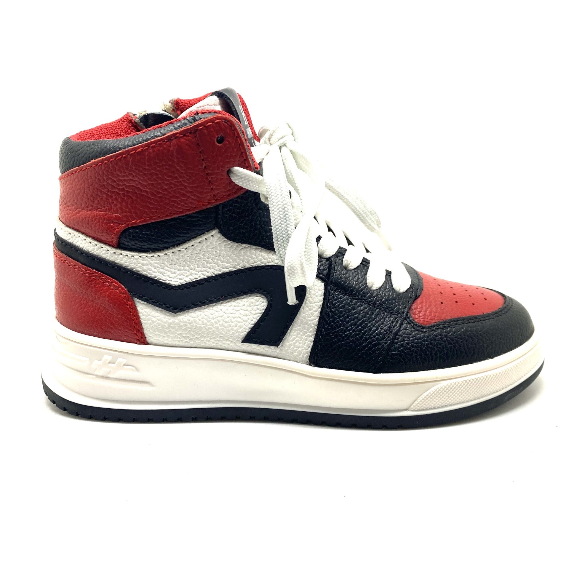 Deze super leuke sneaker Hip is een echte eyecatcher. Een perfecte kleurencombinatie van rood, wit en zwart. Gemaakt uit hoogwaardig leer en voorzien van veter en rits met uitneembaar binnenzooltje. Valt op maat.