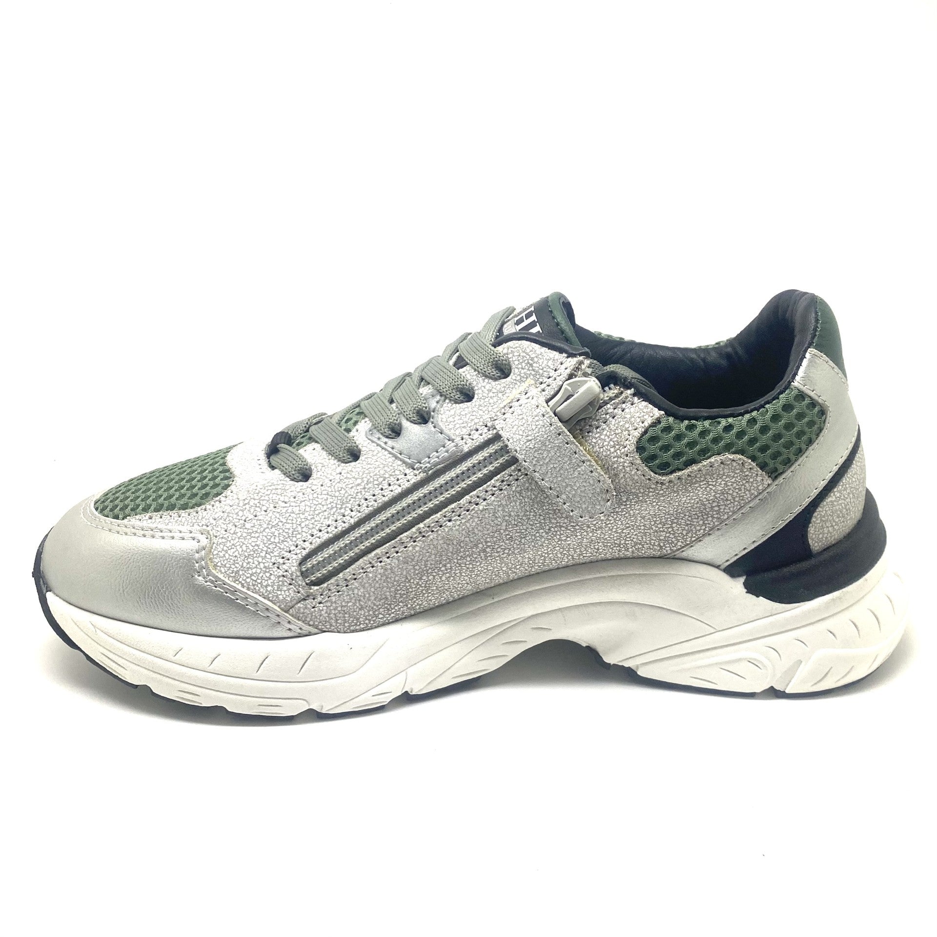 Deze Hip runner combineert groen met een vleugje zilver voor een frisse en trendy look. Binnenin volledig in leer voor een zacht en comfortabel gevoel. Grijze veters en een handige rits aan de zijkant. Het uitneembaar voetbed maakt hem ook ideaal voor steunzolen.