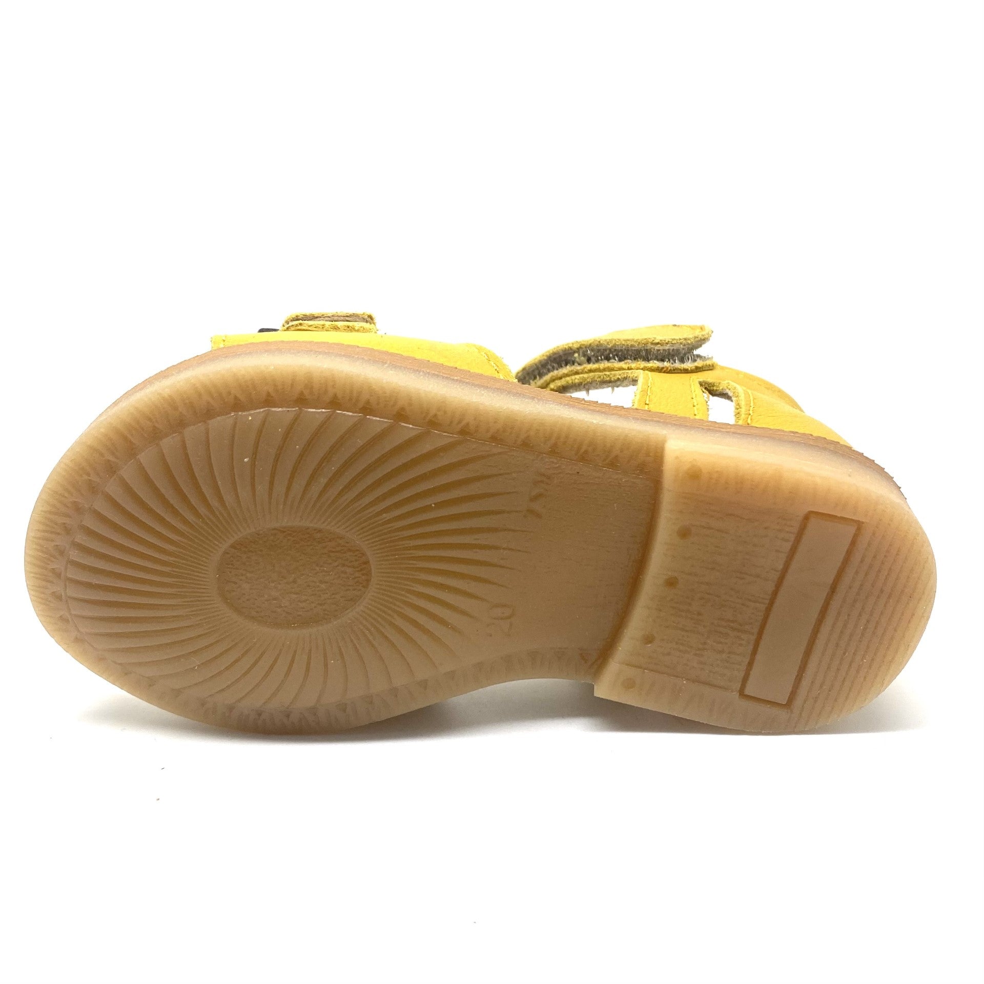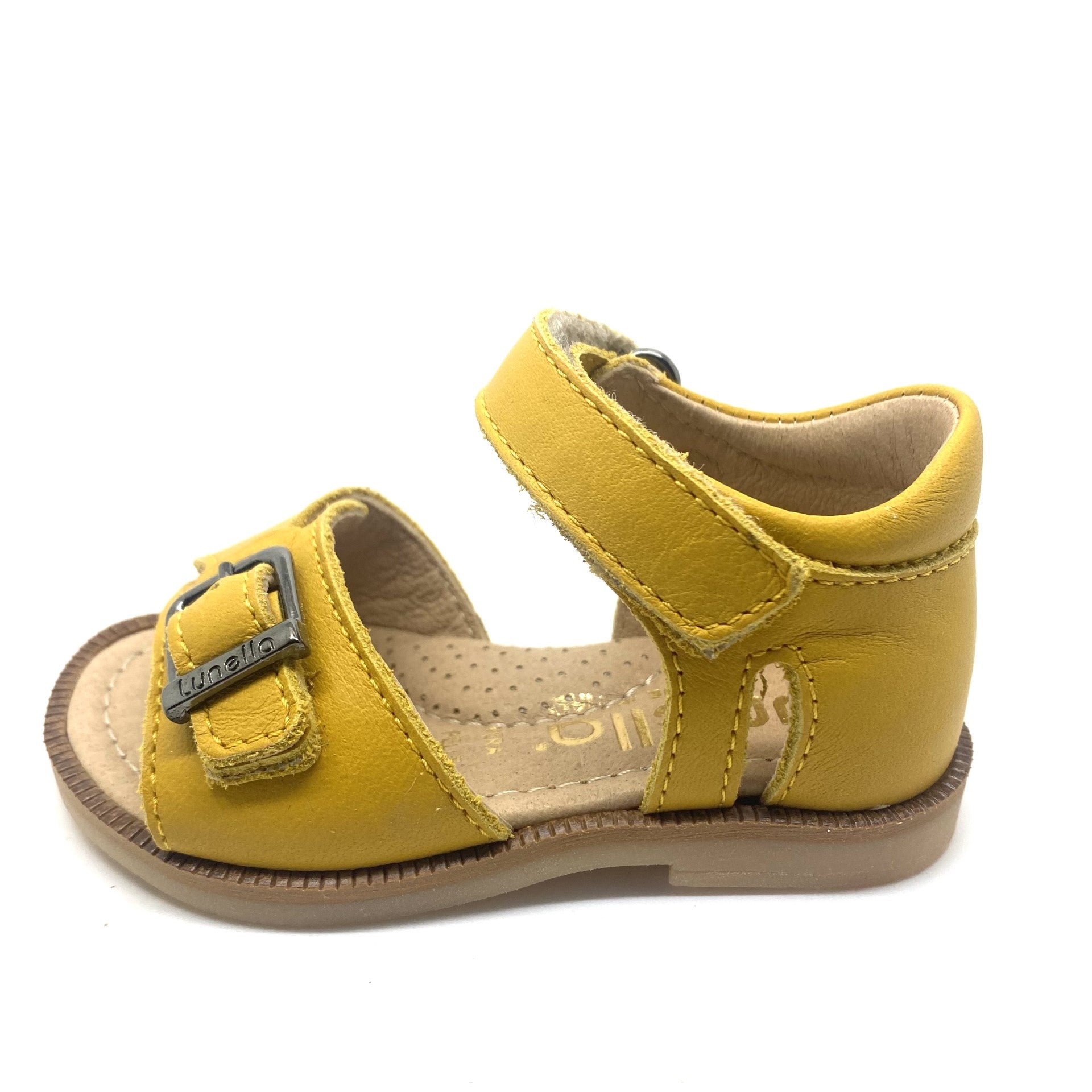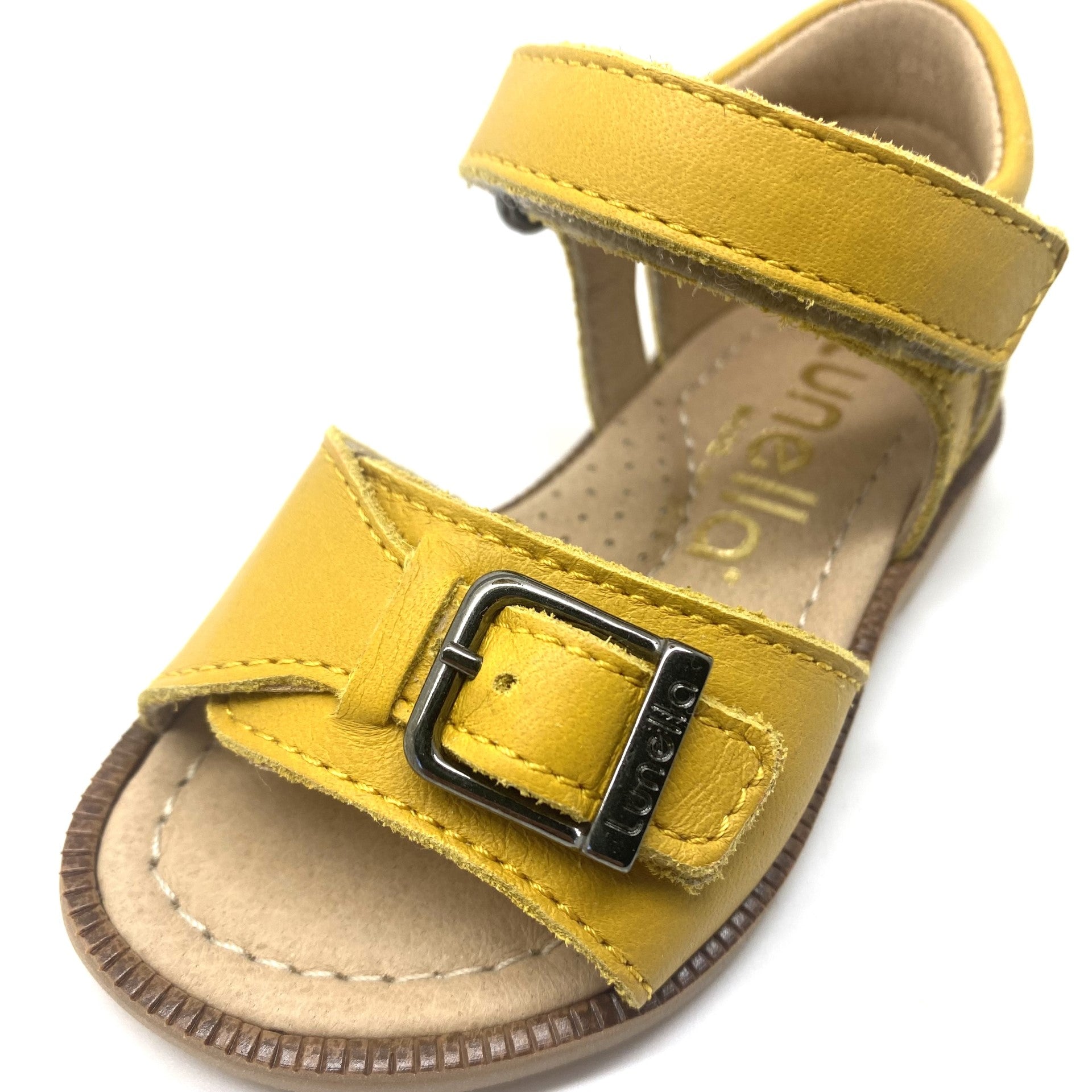 Lunella sandaal oker met gesloten hiel en vooraan verstelbaar.