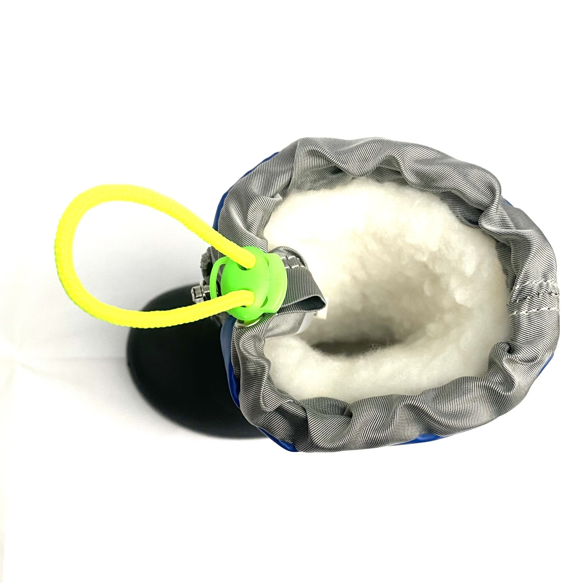 Dit Olang laarsje is ideaal voor kinderen die spelen en ravotten zonder natte voetjes. BUITENKANT: onderkant zwart, wat zorgt voor een robuuste, vuilafstotende basis. Het deel rond het been is gemaakt van blauw afwasbaar materiaal . VOERING: volledig gevoerd met zachte en warme pels. Dus gegarandeerd warme voetjes. ZOOL: zeer goede grip voor die winterse dagen. SLUITING: rits vooraan en aantrekknopje dit voorkomt sneeuw in het laarsje.