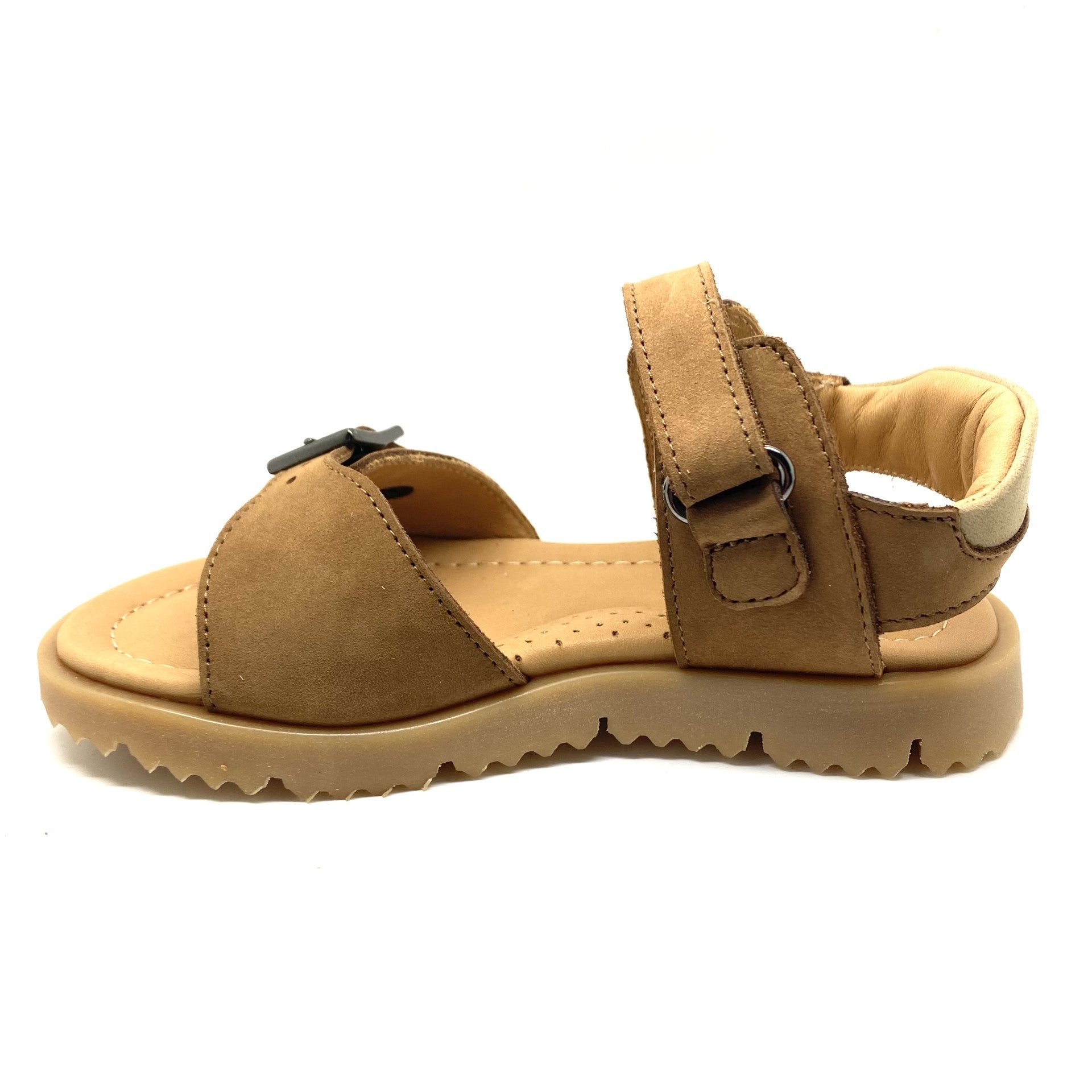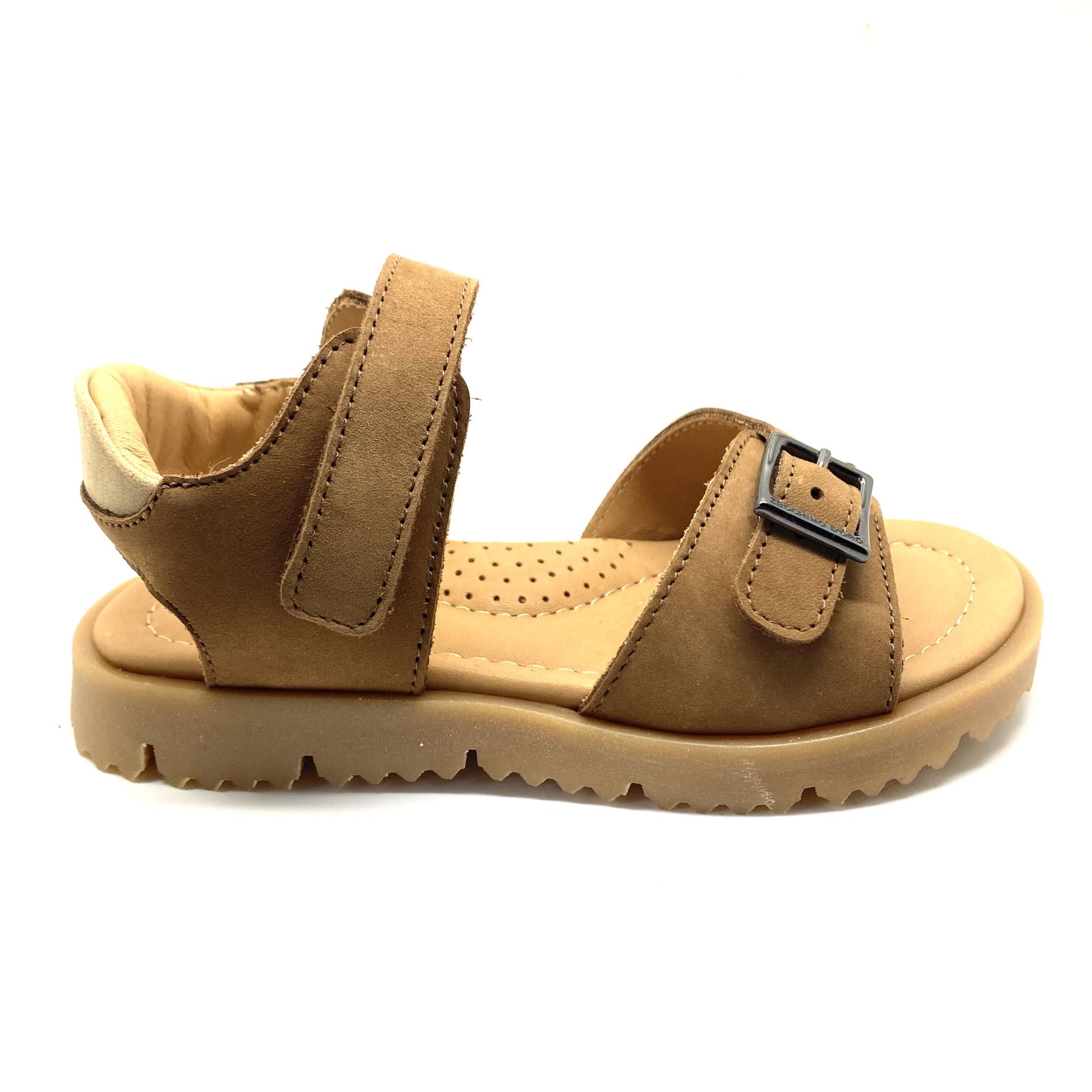 Mooie sandaal in cognac met velcro en vooraan verstelbaar met gesp.